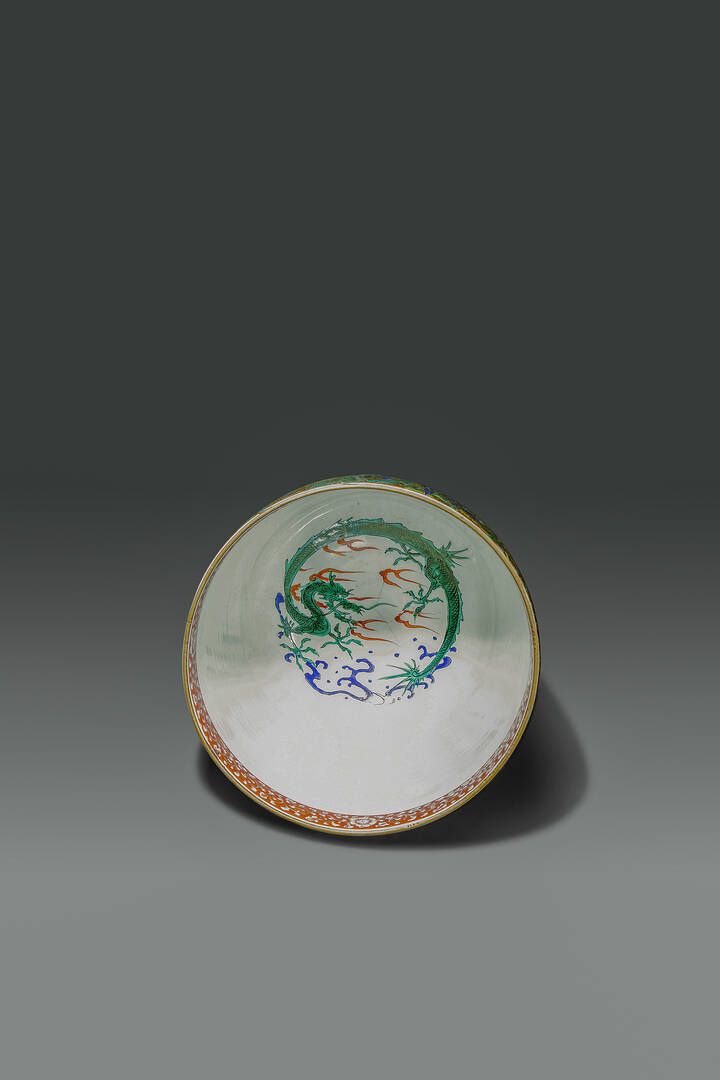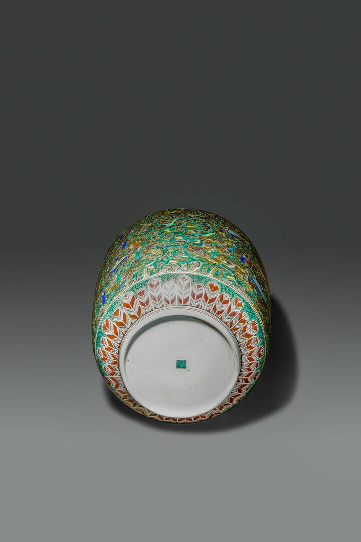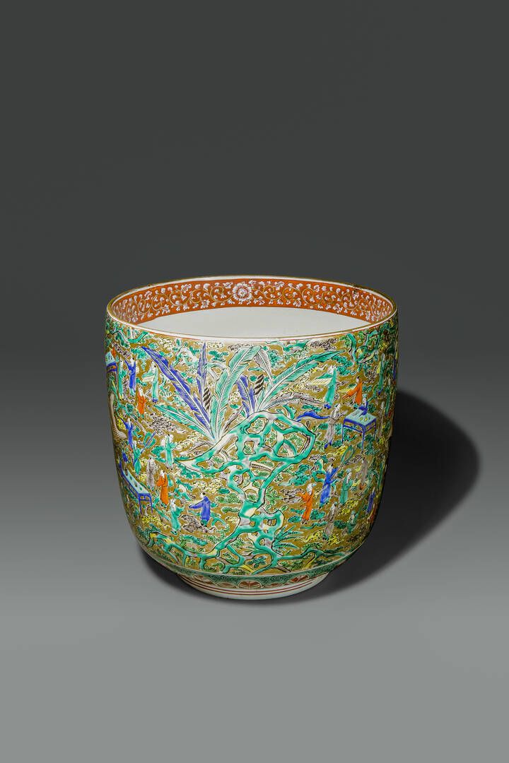 Vasca in porcellana policroma su fondo oro Giappone XIX secolo. H cm 30x31