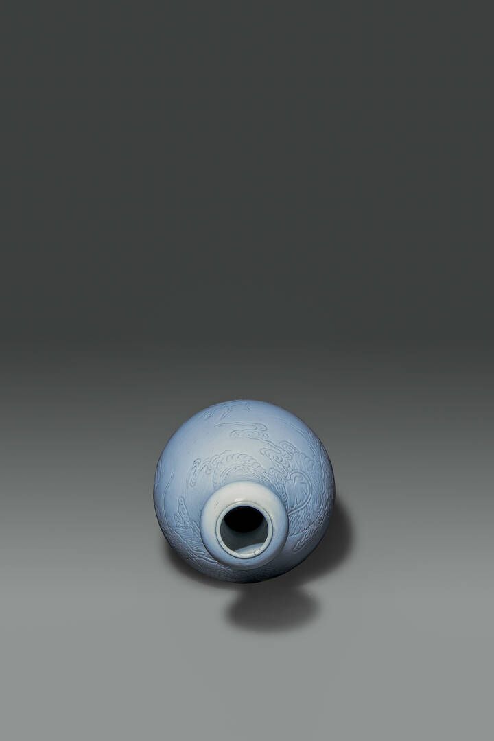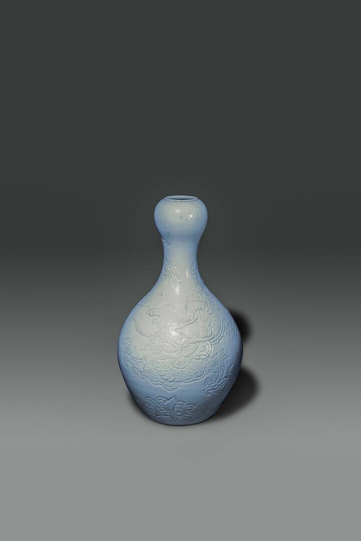 Vaso a forma di zucca blanc de chine decorato con draghi a rilievo Cina dinastia [..]