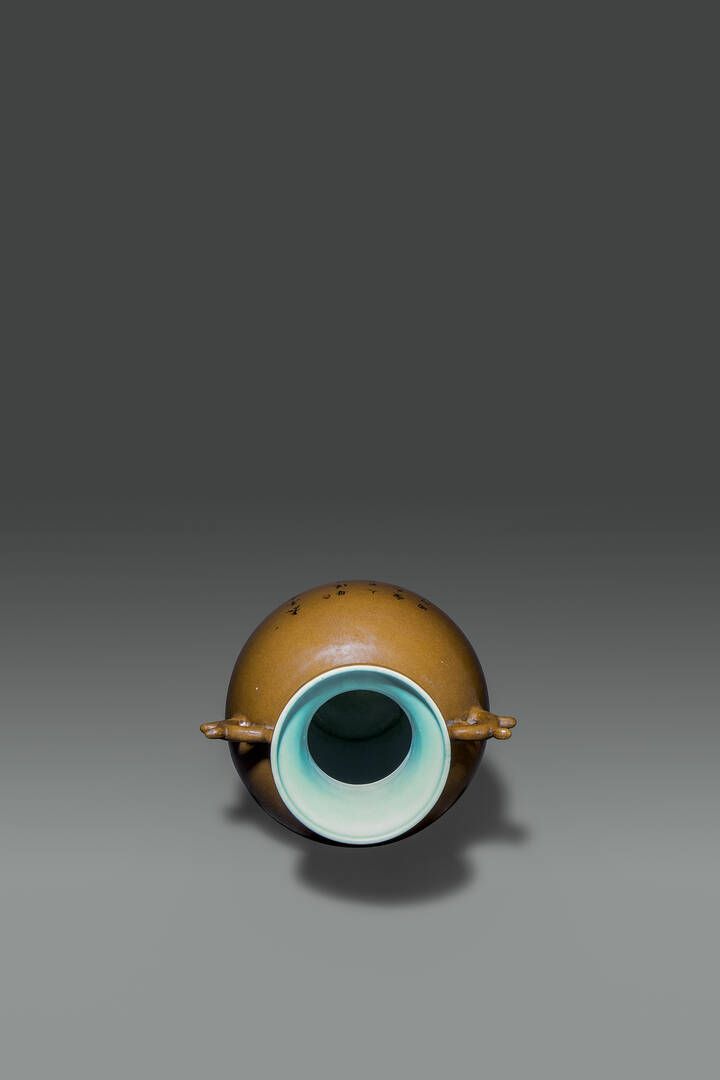 Vaso cappuccino con coperchio e manici decorato con personaggi su drago e iscrizioni [..]