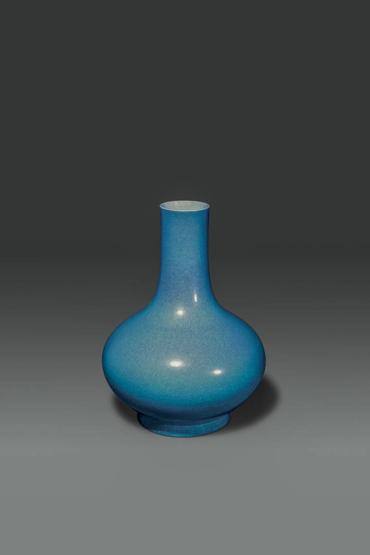 Vaso in porcellana con decoro Robin eggs Cina Repubblica XX sec Marchio apocrifo Guangxu (1875-1908) H cm 32 5 Diam cm 24