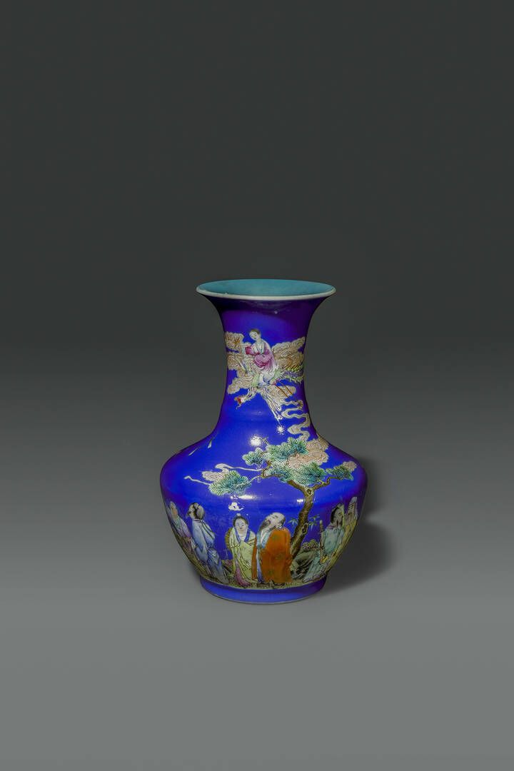 Vaso in porcellana di color blu cobalto con dipinti di vita quotidiana Cina dinastia [..]
