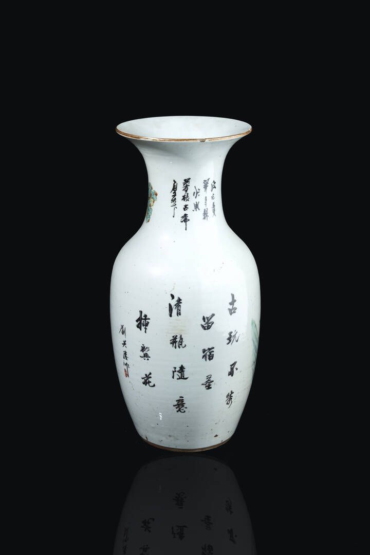 Vaso in porcellana Famiglia Rosa decorato con scene di vita quotidiana e iscrizioni Cina dinastia Qing XIX sec. h cm 44x20