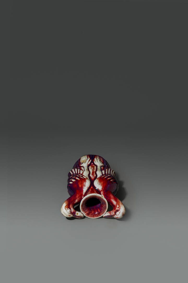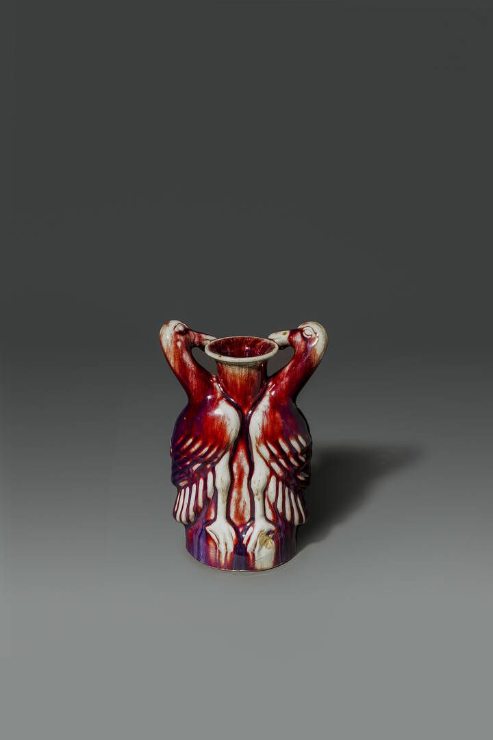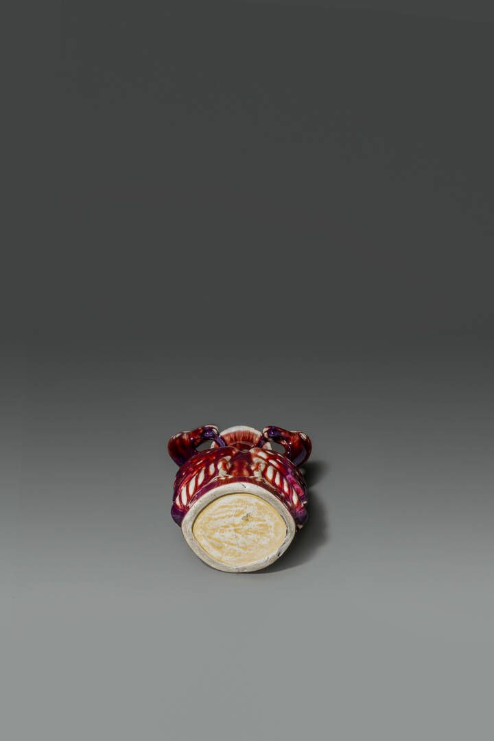 Vaso in porcellana flambč con anse a guisa di volatili Cina dinastia Qing XIX [..]
