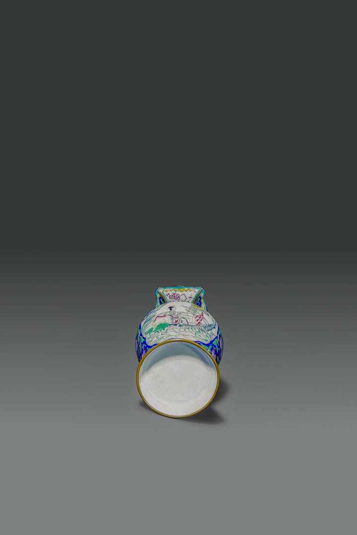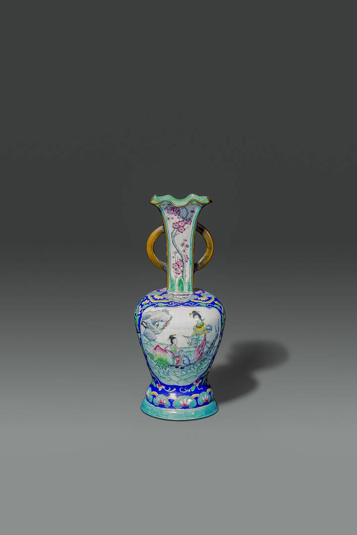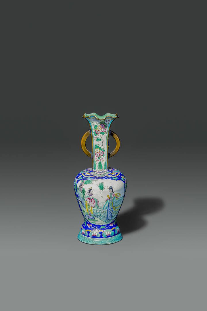 Vaso in smalti dipinto con personaggi Cina dinastia Qing XIX sec H cm 26 Diam [..]
