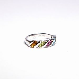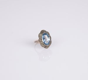 Misura 15 Argento 800/000, topazio azzurro in taglio ovale. Punzone ventennio. Peso complessivo gr 7