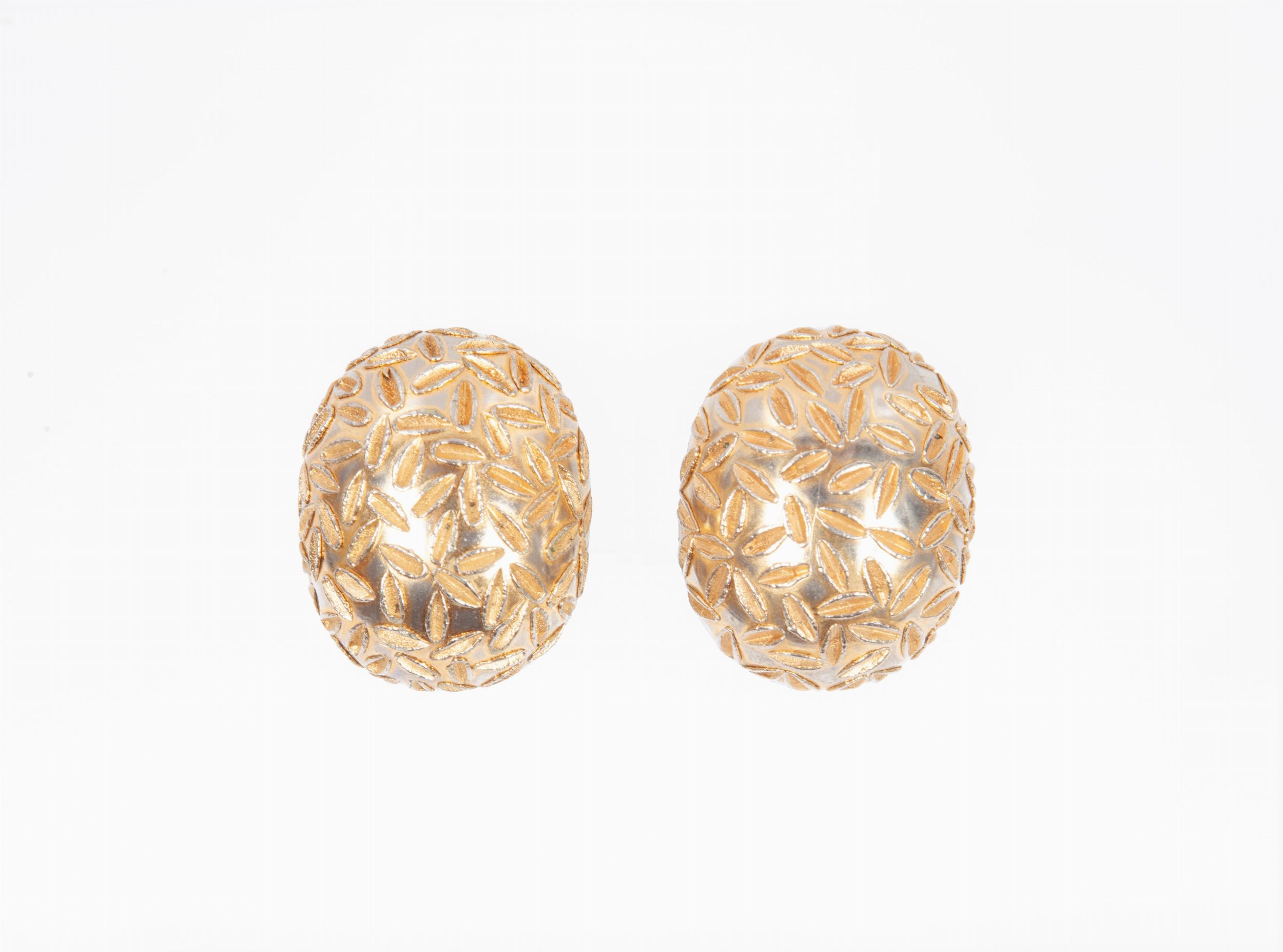 Coppia di orecchini a bottone semisfera in metallo dorato