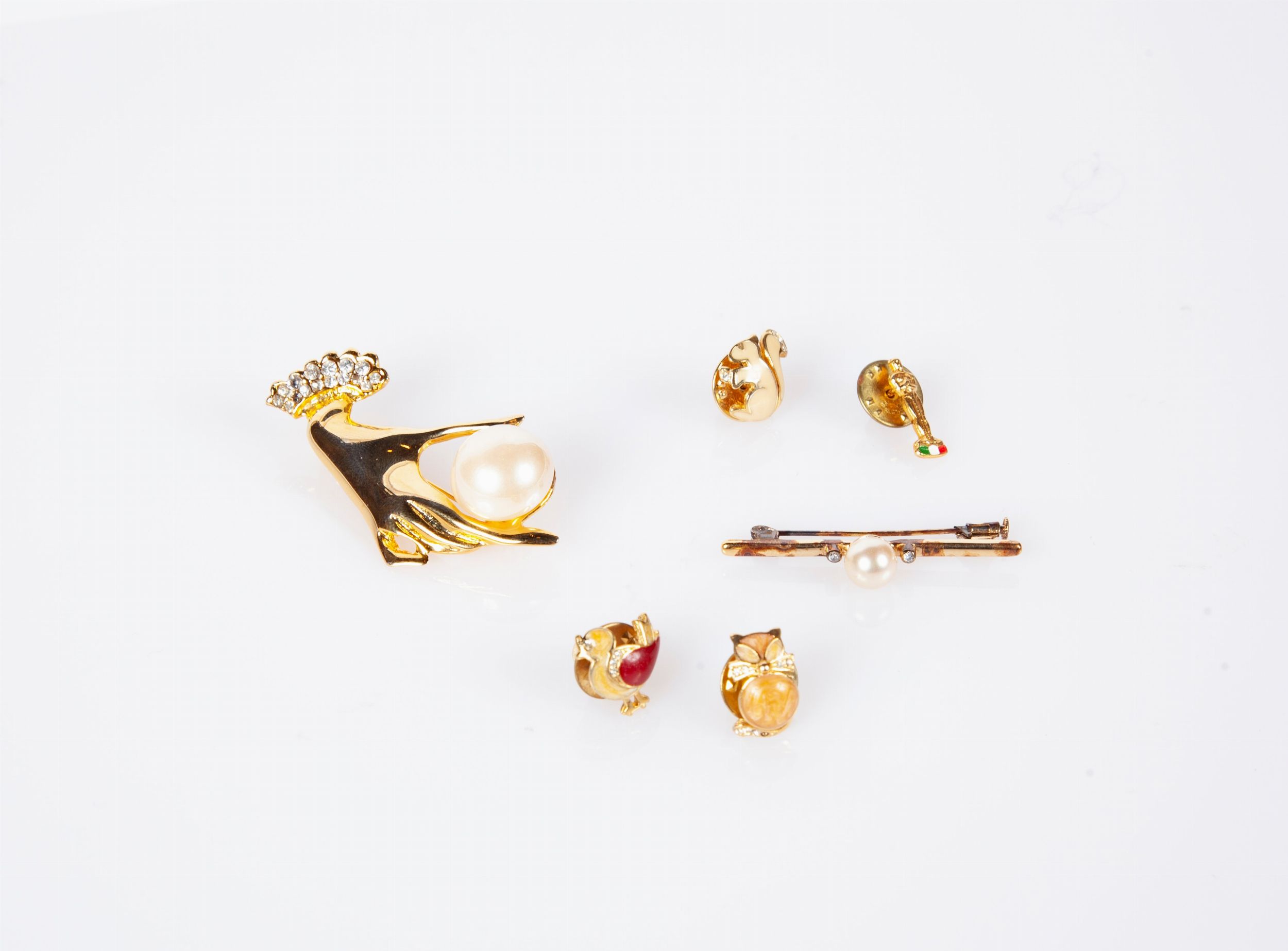 Lotto di 2 spille e 4 bottoni da revers in metallo dorato