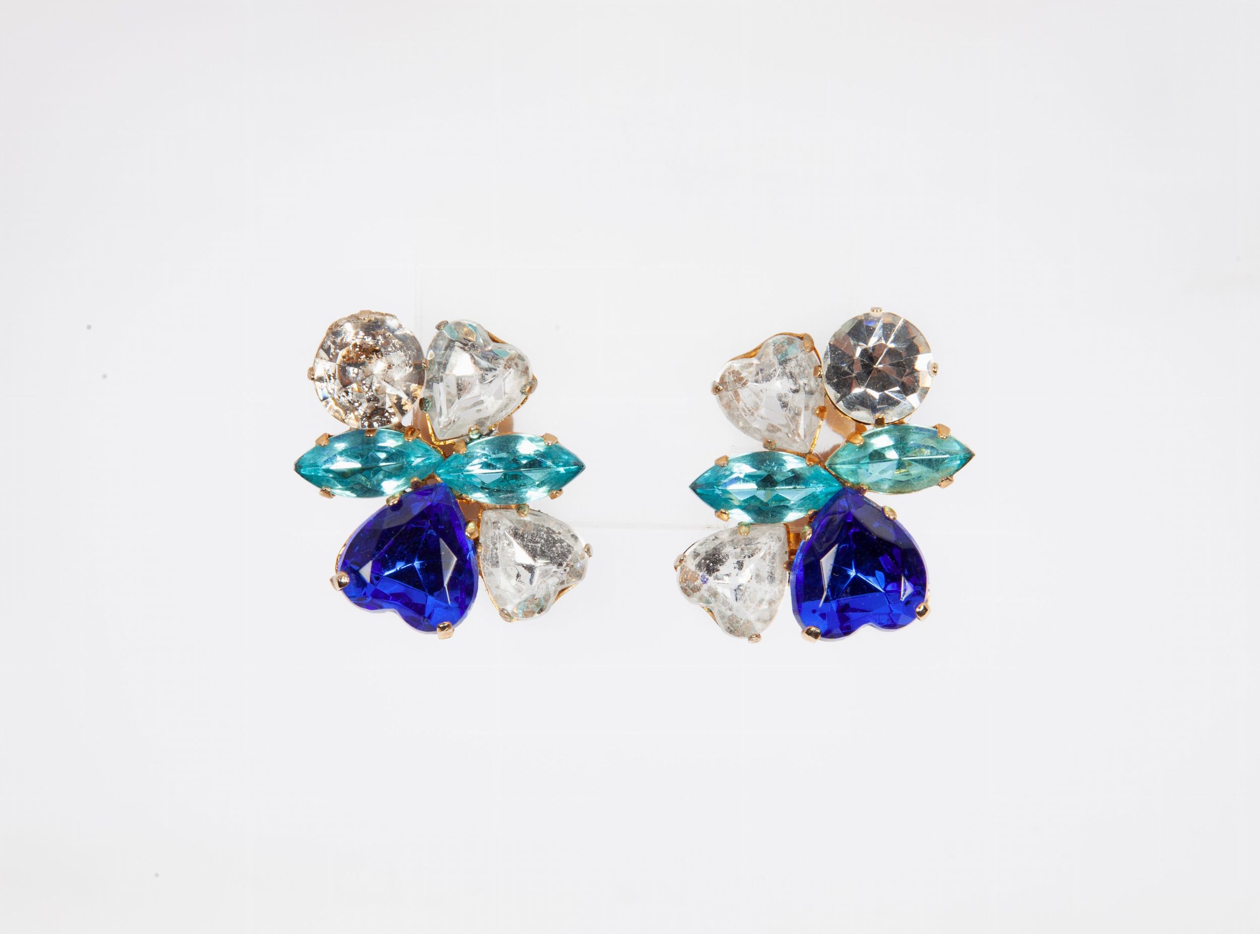 Orecchini in metallo con strasse blu e azzurri