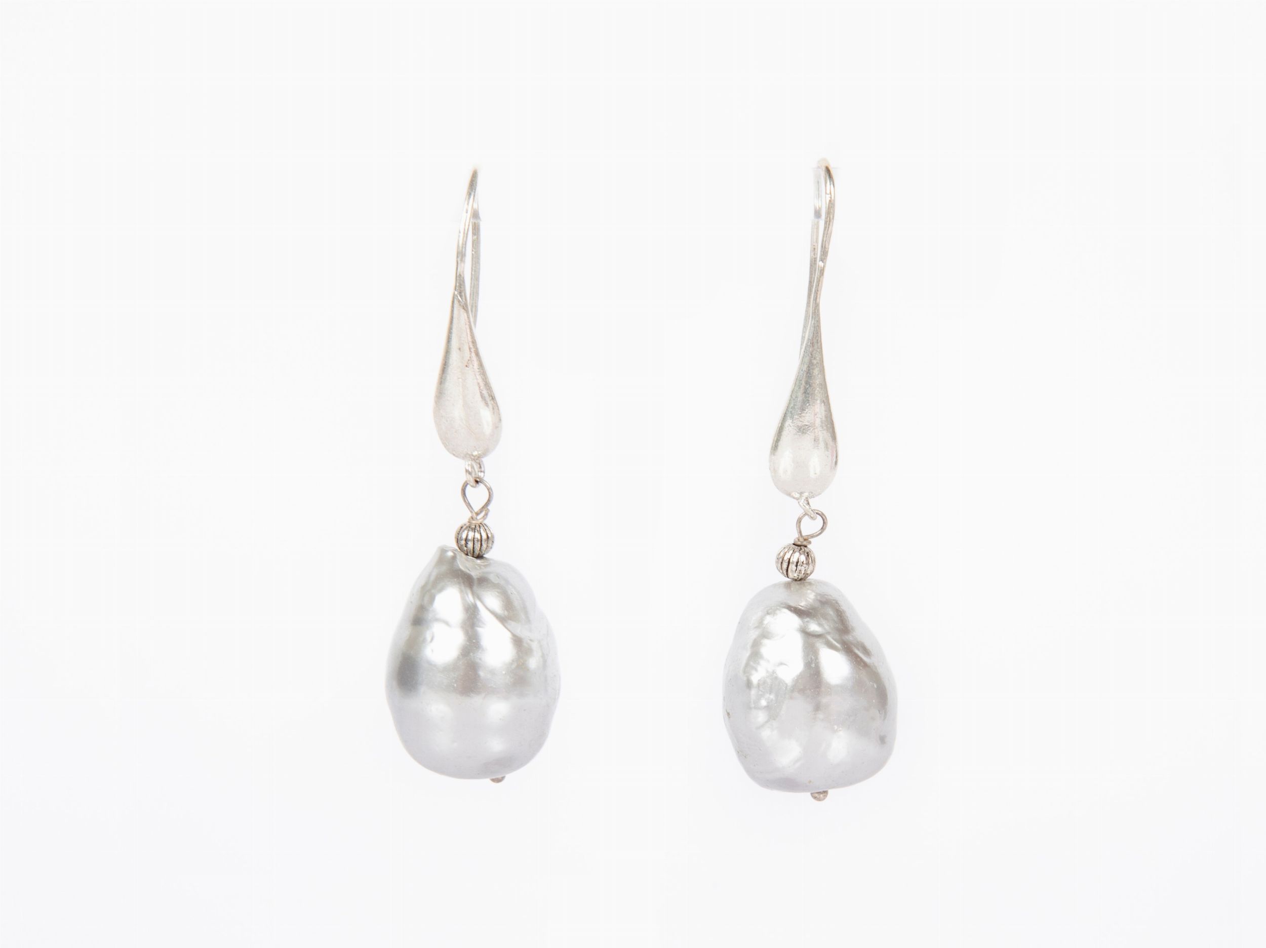 Orecchini pendenti in metallo argentato e simil perla