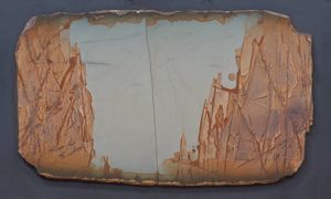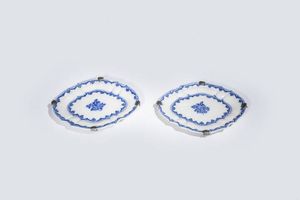 27X23 di forma ovalizzata con bordo sagomato in porcellana bianca con decori blu. XVIII secolo. Presenti sbeccature [..]