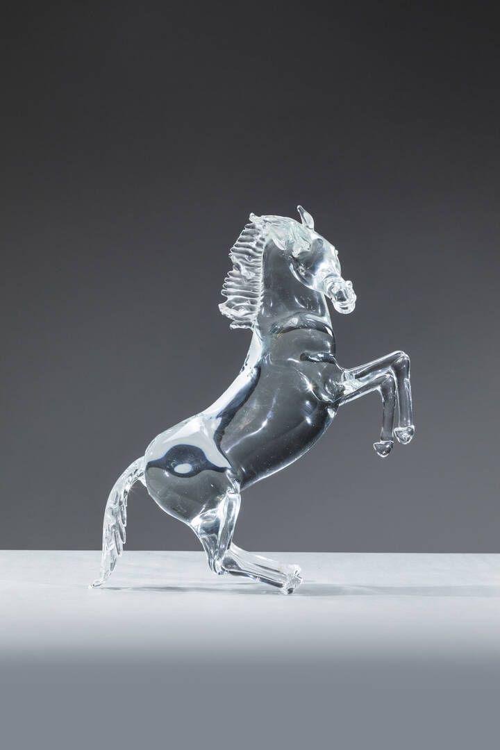 Cavallo in vetro di Murano incolore. Firma incisa cm 34x55 (in piedi) cm 50x55