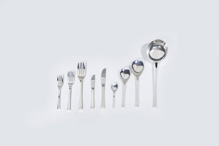 Peso gr 3453 1 firmato Calderoni- Gioielli composto da: - 12 cucchiai grandi. Peso gr 941 5 - 12 forchette grandi. Peso gr 868 3 - 12 forchette medie. Peso 579 2 - 12 cucchiaini. Peso 266 4 - 12 coltelli grandi. Peso gr 203 8 - 12 coltelli medi. Peso gr 156 7 - 3 pezzi da portata. Peso gr 437 2