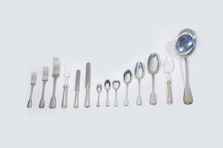 Peso gr 4738 composto da: -12 coltelli grandi. Peso gr 302 -12 cucchiai grandi. [..]