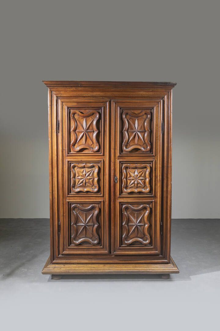 Piemonte XVIII secolo in legno di noce con formelle ad intarsi a motivi geometrici. [..]