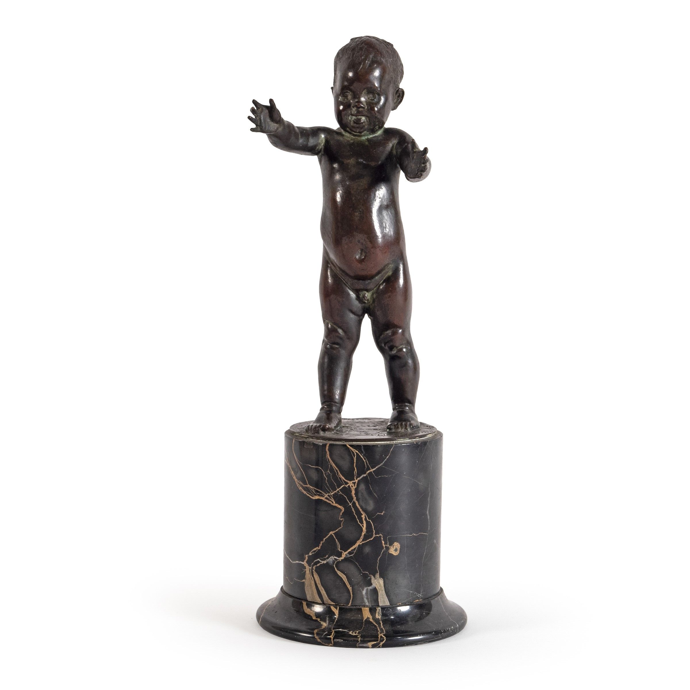 Italia 1866-1945 scultura in bronzo raffigurante un fanciullo, poggiante su base in marmo, firmata alla base