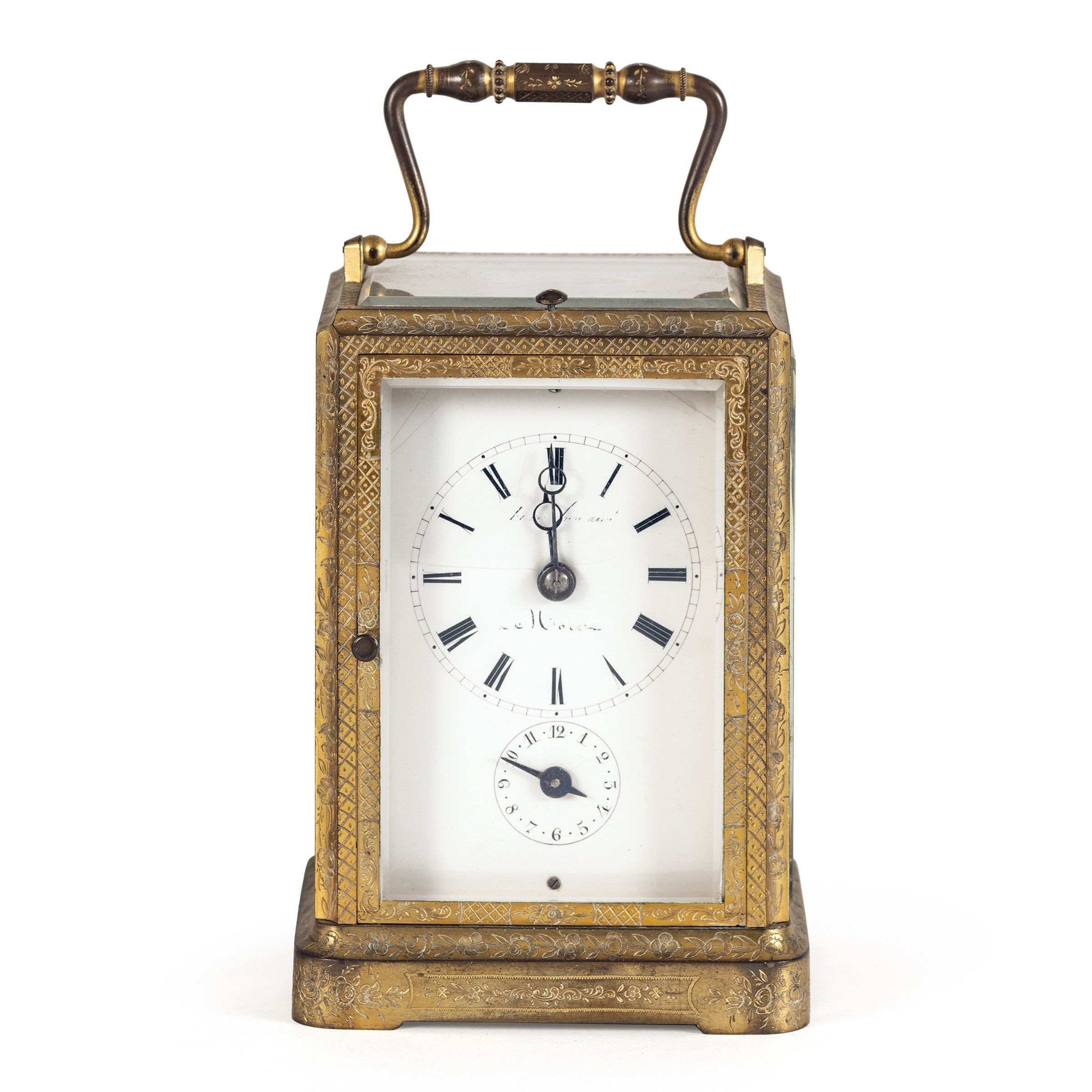 Francia, fine XIX Sec. maniglia sagomata con movimento a vista, custodia in cuoio