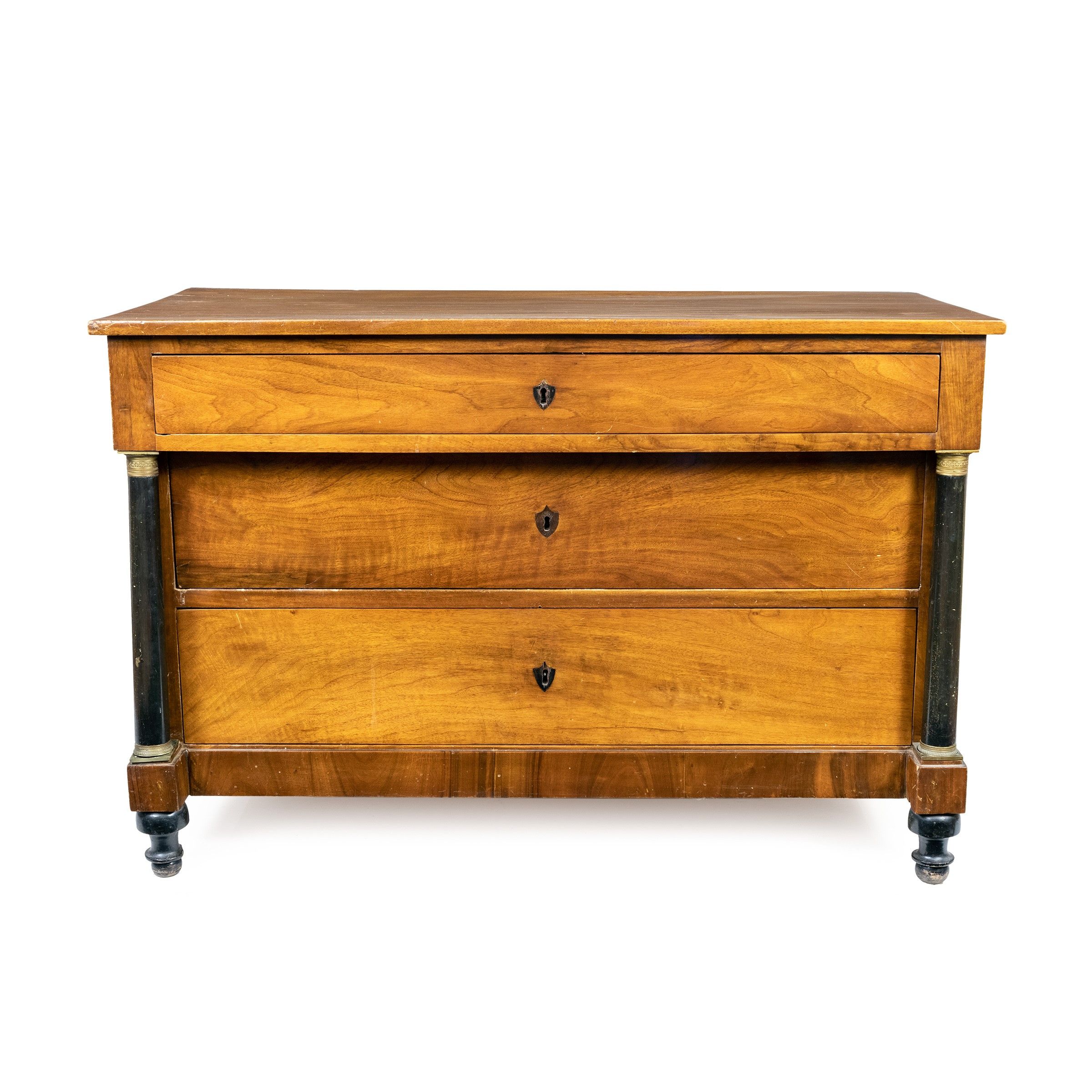Italia, XIX Sec. fronte a tre cassetti delimitati da colonnine in legno ebanizzato e applicazioni in bronzo