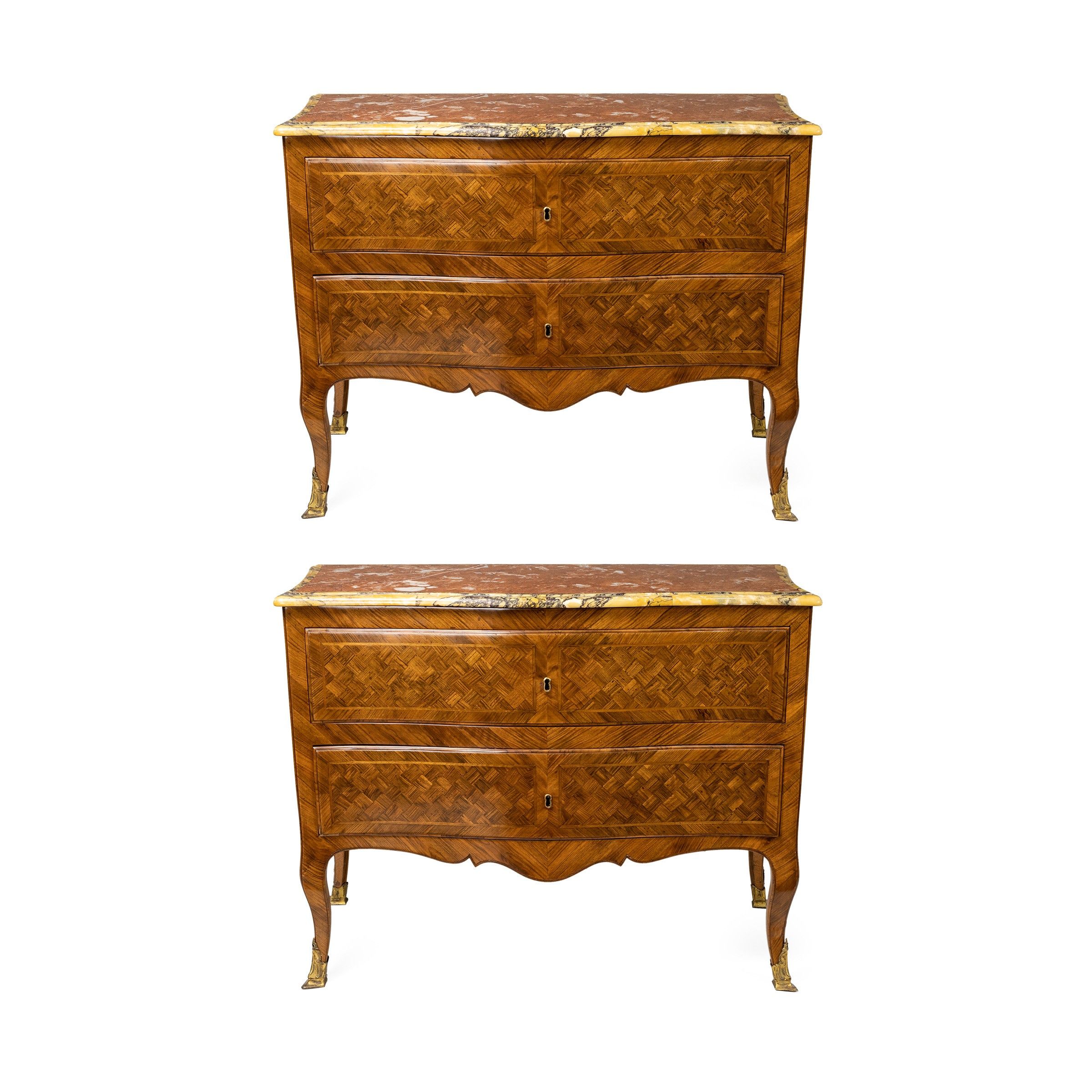 Italia, XVIII Sec. intarsiati a marquetterie e motivi geometrici, fronte a due cassetti, piani in marmo giallo di Siena e marmo rosso