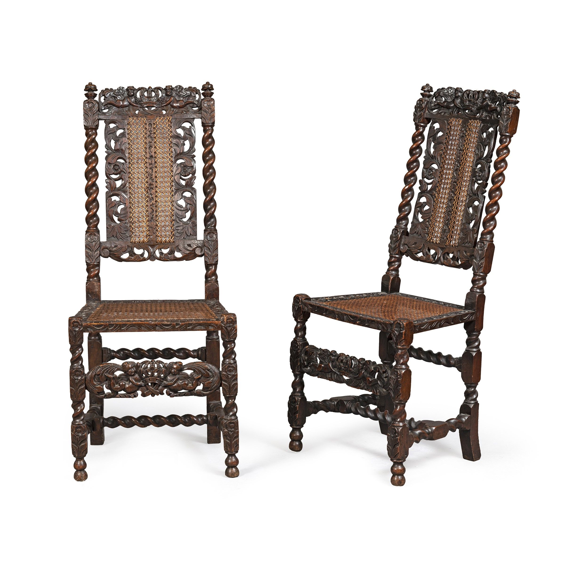 Inghilterra. XVIII-XIX Sec. struttura composta da elementi torniti e traforati con volute vegetali e putti alati, sedute e schienali parzialmente rivestite in paglia di Vienna, lievi difetti