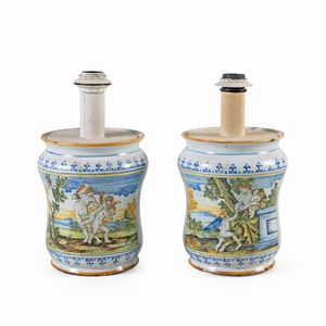 34x18 cm. Italia meridionale, XVIII-XIX Sec. decorati in policromia con figure di Venere e amorini su sfondo [..]