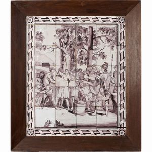 Pannello composto da mattonelle in maiolica con decoro monocromo