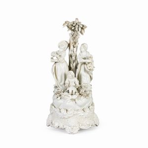 h. 29 cm. Nove di Bassano, XVIII-XIX Sec. raffigurante scena di genere, poggiante su base a roccailles decorata [..]