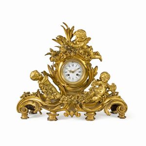 48x55x18 cm. Francia, 1860-1870 circa riccamente decorato in stile neo-rococò con motivi a roccaille, putti alati [..]