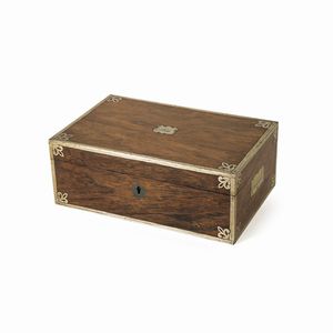 19x51x29 cm. Inghilterra, XIX Sec. interno con piano in pelle e scomparti vari, lievi mancanze