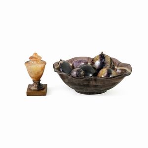 7x20x15 cm. XIX-XX Sec. composto da un cestino, sei uova, due medaglioni e un'anfora
