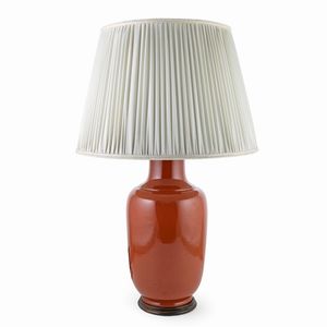 h. 55 cm. XX Sec. poggiante su base circolare in legno, completa di paralume in tessuto