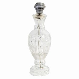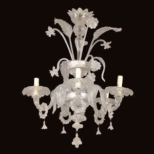 60x80 cm. XX Sec. in vetro trasparente con inclusioni in oro, bracci mossi, fusto tornito con decorazioni floreali [..]