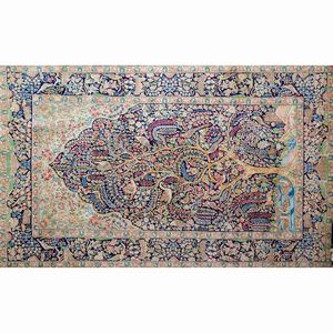 147x236 cm. Persia, XX Sec. decoro floreale multicolor su fondo beige, lievi usure