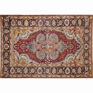163x90 cm. XX Sec. decoro floreale e geometrico su fondo rosso, lievi usure