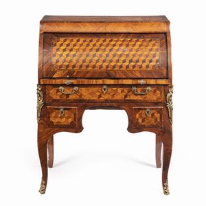 105x80x51 cm. Francia, seconda metà del XVIII Sec. lastronato ed intarsiato a marquetterie in varie essenze, [..]