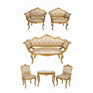 divano 93x152x50 cm. Italia, XX Sec. composto da un divano, una coppia di poltrone, una coppia di sedie e un [..]