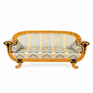 100x225x70 cm. Nord Europa, XIX Sec. struttura in betulla con applicazioni laterali in legno ebanizzato, seduta [..]