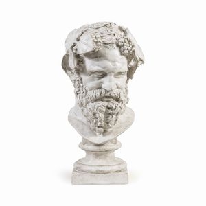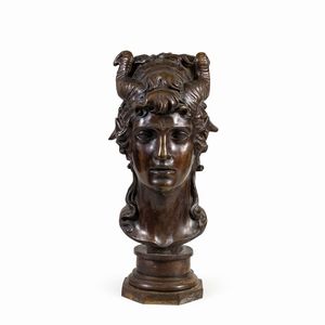 h. 57 cm. XX Sec. raffigurante una testa bifronte di Uomo e Bucranio, poggiante su base ottagonale, firmata C [..]