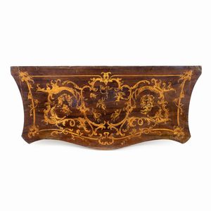 143x63 cm. Italia, XVIII Sec. corpo sagomato lastronato in noce e intarsiato in legno di bosso con motivi di [..]