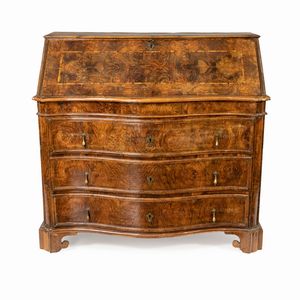 112x118x58 cm. Italia, XVIII-XIX Sec. fronte con calatoia celante tiretti e scomparti vari con tre cassetti sottostanti, [..]