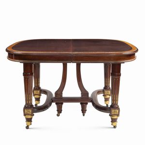 75,5x118x111 cm. Francia, XIX Sec. piano rettangolare con angoli stondati, poggiante su quattro sostegni scanalati [..]