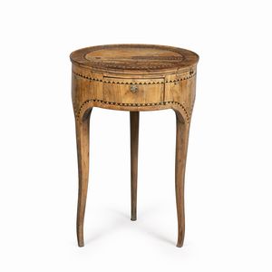 76x124x100 cm. Francia, XIX Sec. piano ovale poggiante su cinque gambe tornite e scanalate provviste di rotelle, [..]