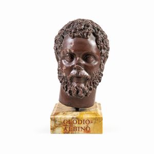 h. 26 cm. XIX-XX Sec. raffigurante l'imperatore romano Clodio Albino, poggiante su base squadrata in marmo giallo [..]