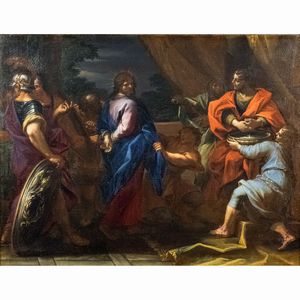 49x64,5 cm. Pistoia 1624 - Roma 1703 Cristo davanti a Pilato, olio su tela, entro cornice