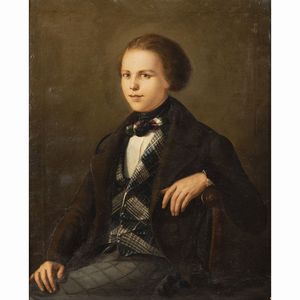 35x28 cm. XIX Sec. Ritratto maschile, olio su tela, entro cornice