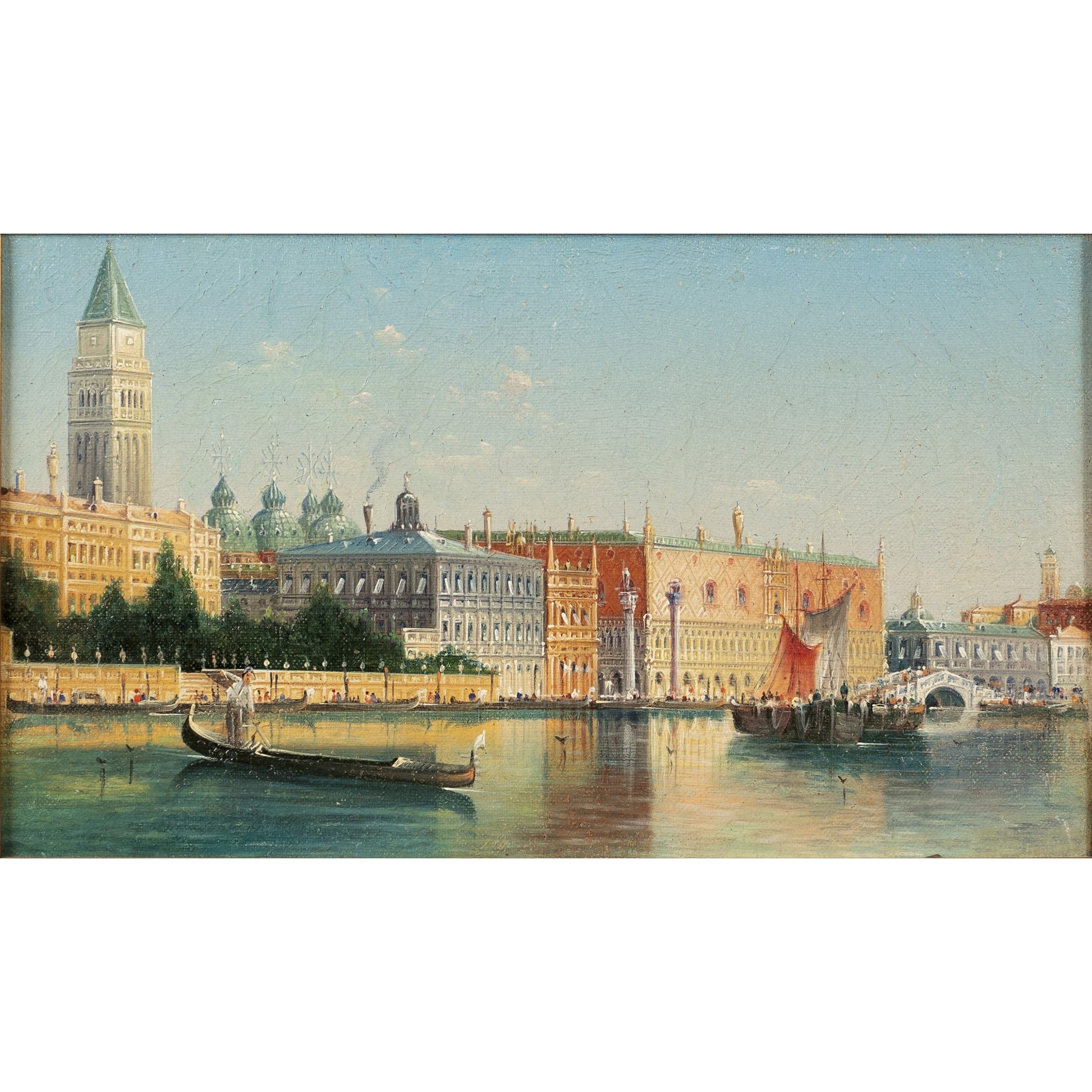 XIX-XX Sec. Veduta di Venezia, olio su tela, entro cornice