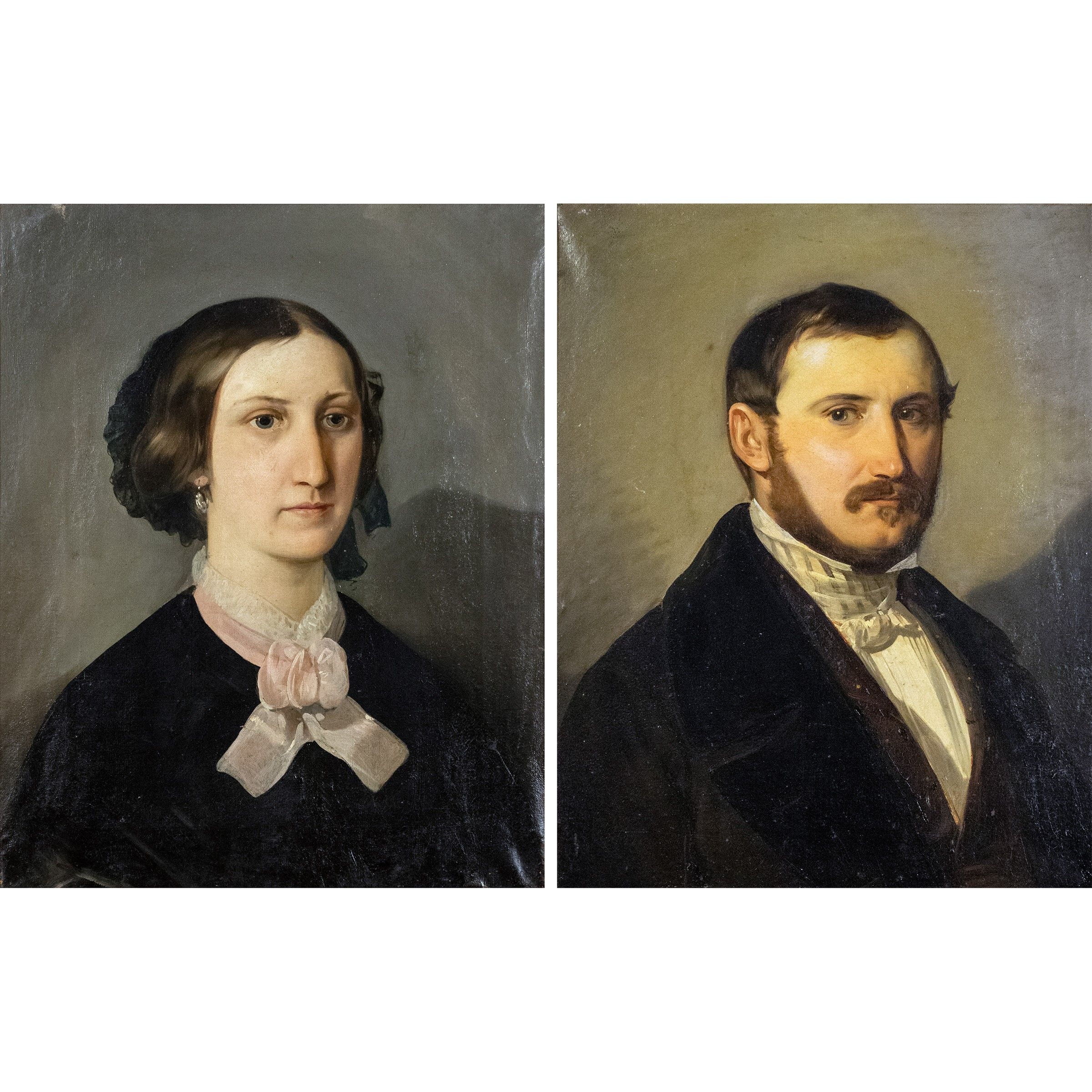 XIX Sec. Ritratti di coniugi, coppia di oli su tela, entro cornice