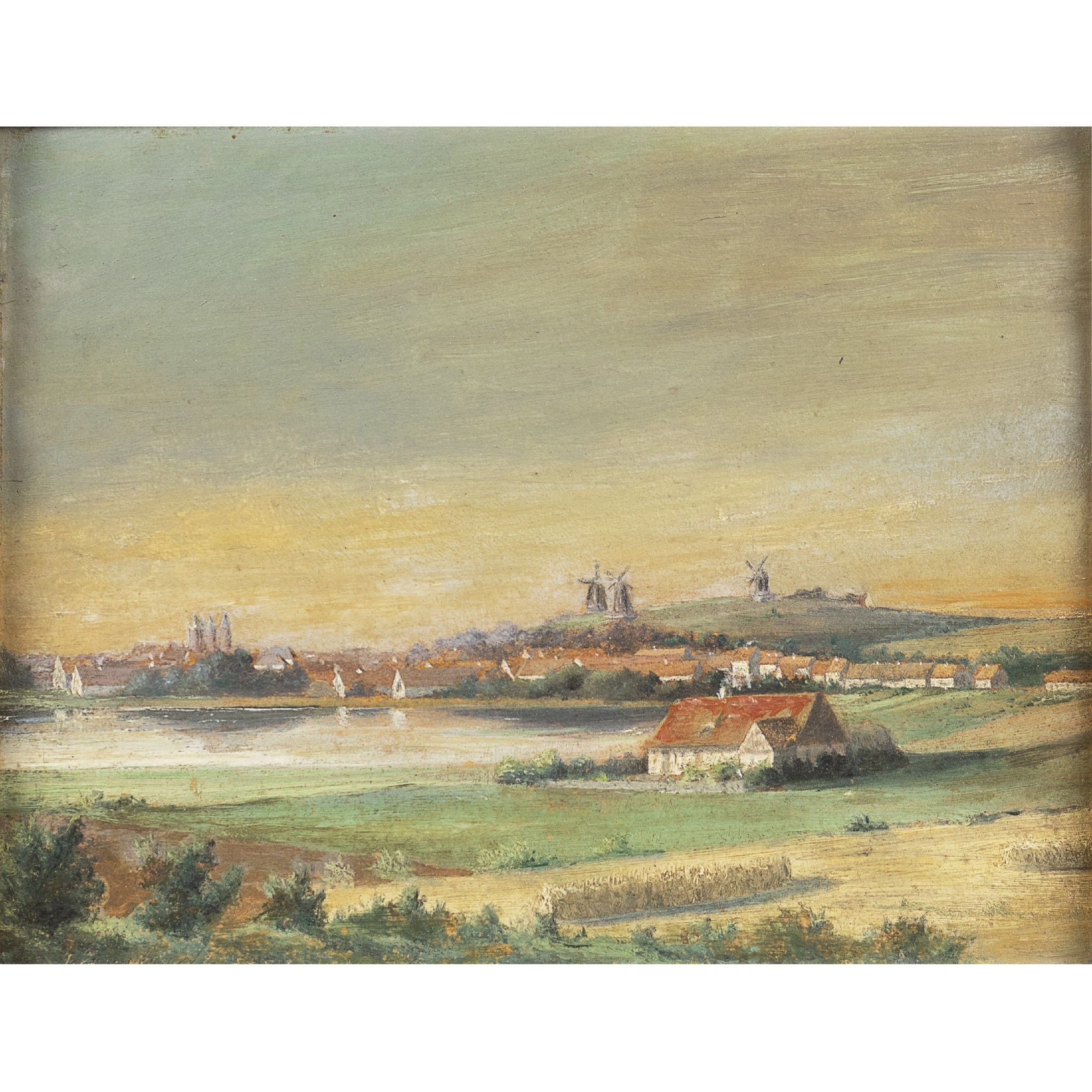XIX-XX Sec. Paesaggio, olio su carta applicata su tela, firmato in basso a sinistra, entro cornice