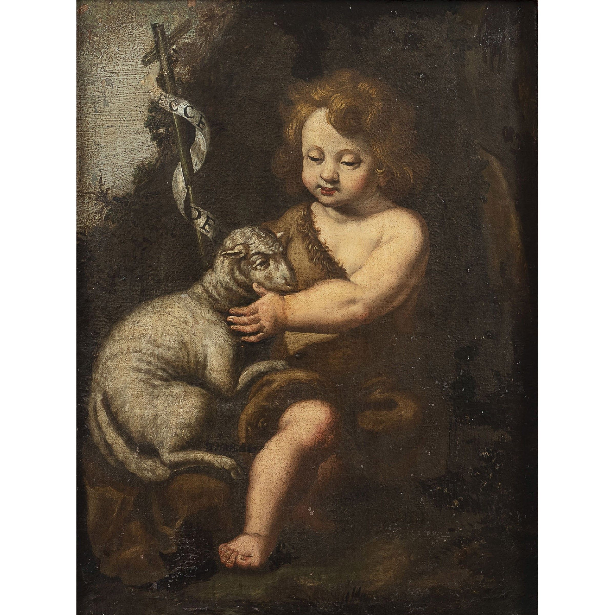 XVII Sec. San Giovannino, olio su tela, entro cornice in legno parzialmente dorato
