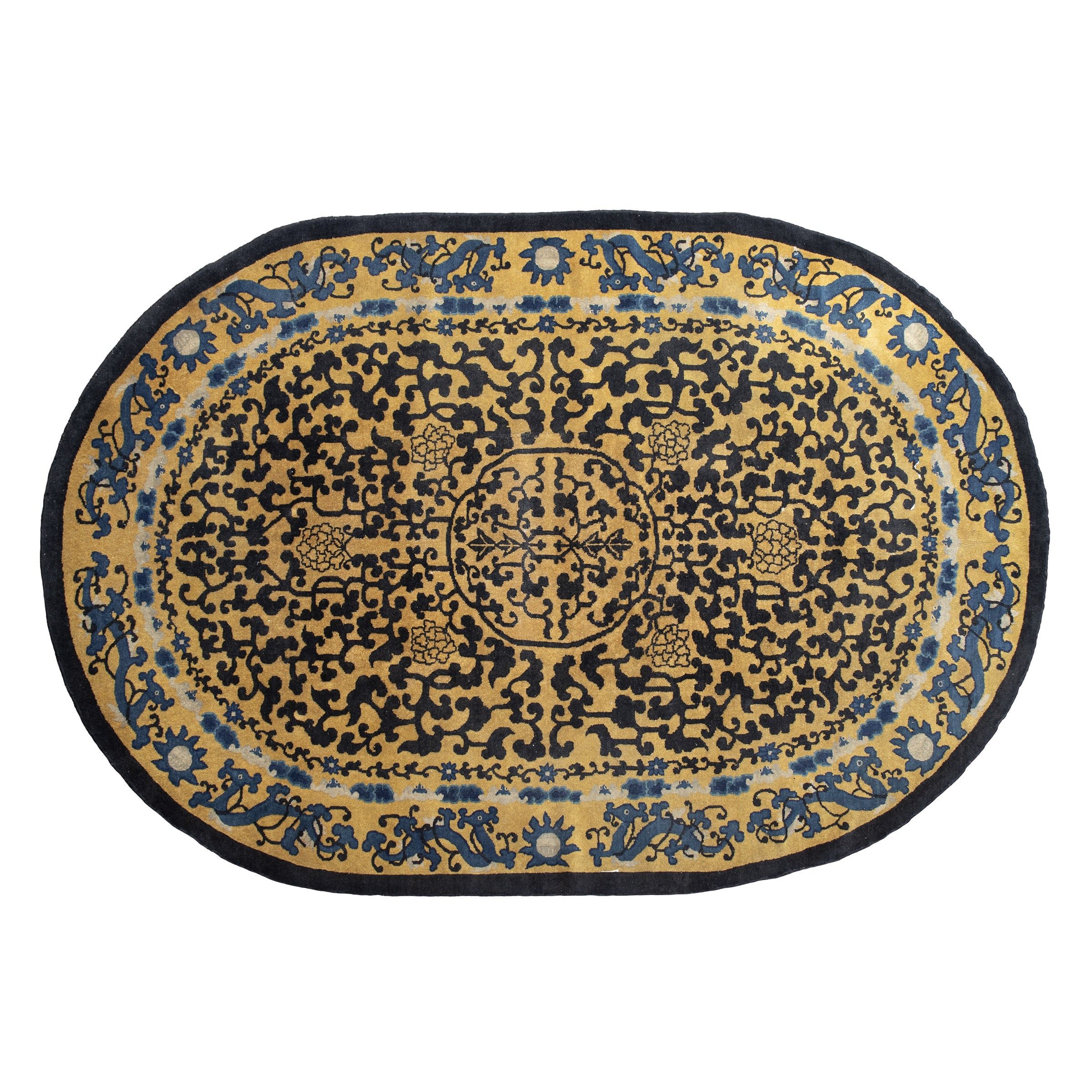 Pechino, prima metà XX Sec. decorato con draghi e motivi stilizzati blu su fondo giallo ocra, segni di usura