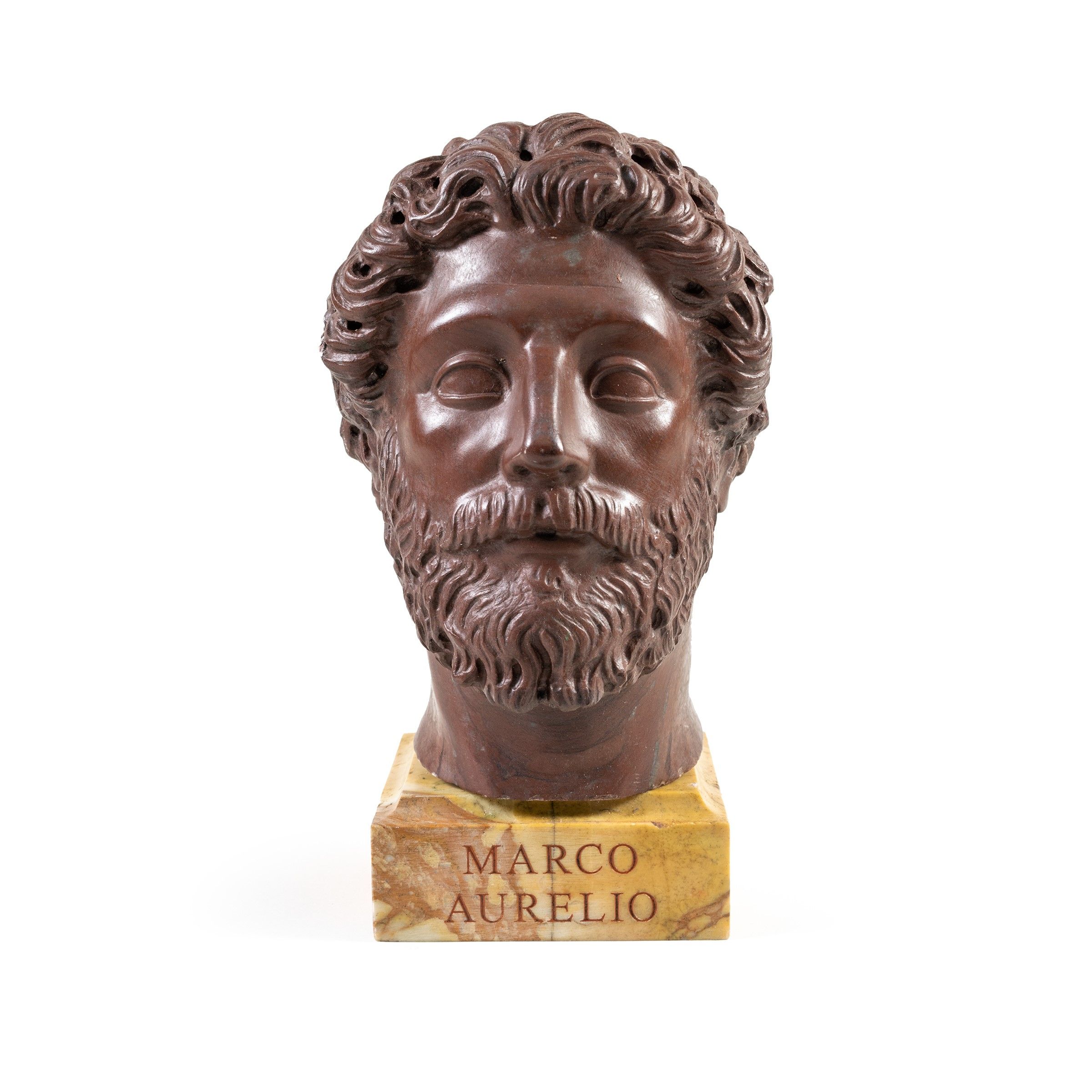 XIX-XX Sec. raffigurante l'imperatore romano Marco Aurelio, poggiante su base squadrata in marmo giallo antico